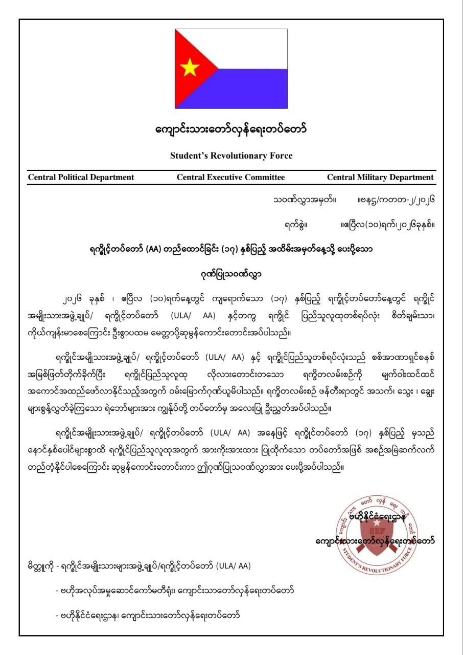 (၁၇) နှစ်မြောက် အာရက္ခတပ်တော်နေ့ အခမ်းအနားသို့တော်လှန်ရေးအဖွဲ့အစည်းအသီးသီး နှင့် အဖွဲ့အစည်းတချို့မှ ပေးပို့လာကြသော သဝဏ်လွှာများ - ၄